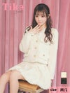 3. ノーカラージャケット×プリーツ入りフレアスカートツイードフリンジボタンセットアップスーツ (Mサイズ/Lサイズ) (/キャバスーツ着用) [Tika/ティカ]