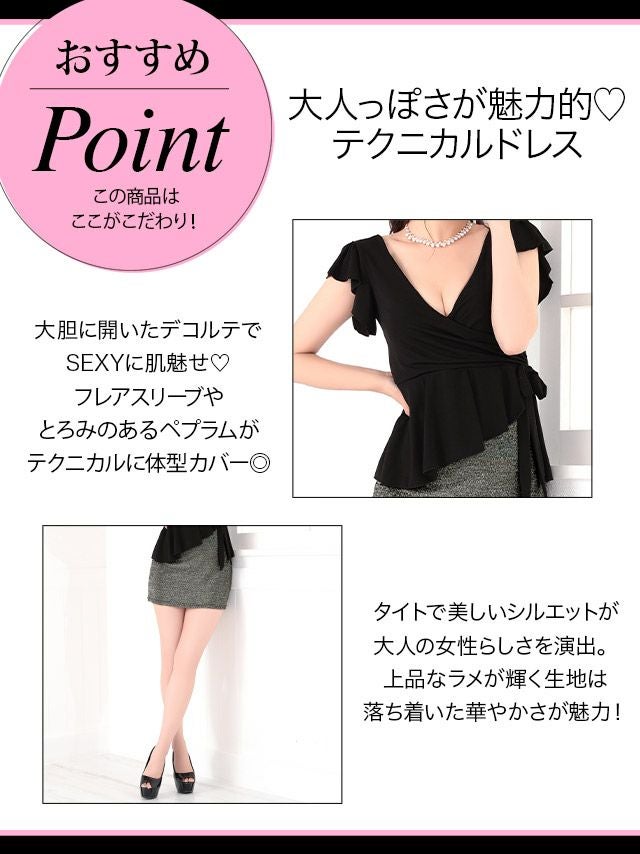キャバドレス 安い 激安 ミニ丈 キャバクラ クラブ ラウンジ フリルスリーブリボンカシュクールタイトミニドレス プチプラドレス