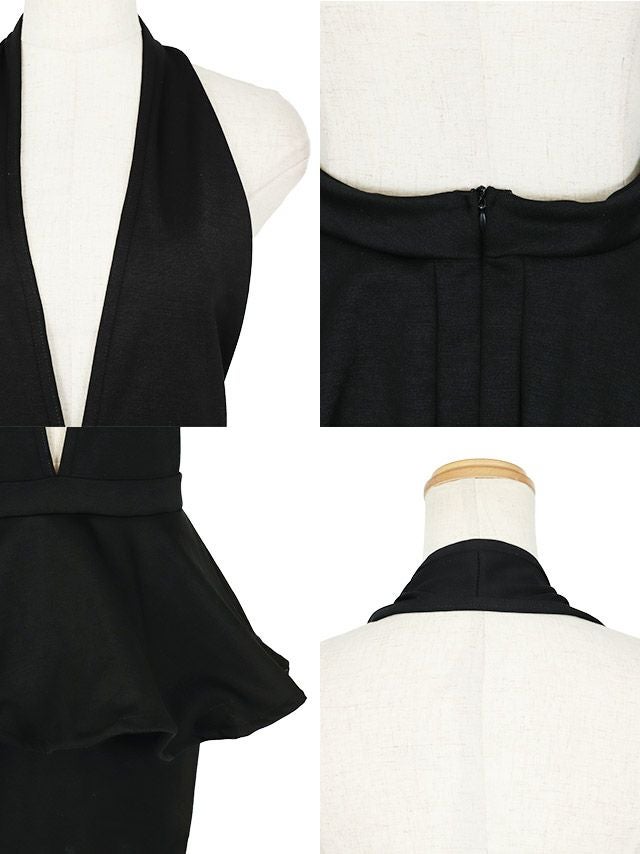 ホルターネックペプラムプチプラタイトミニドレス(Sサイズ~XLサイズ)(せいせい/キャバドレス着用)[myMinette/マイミネット]