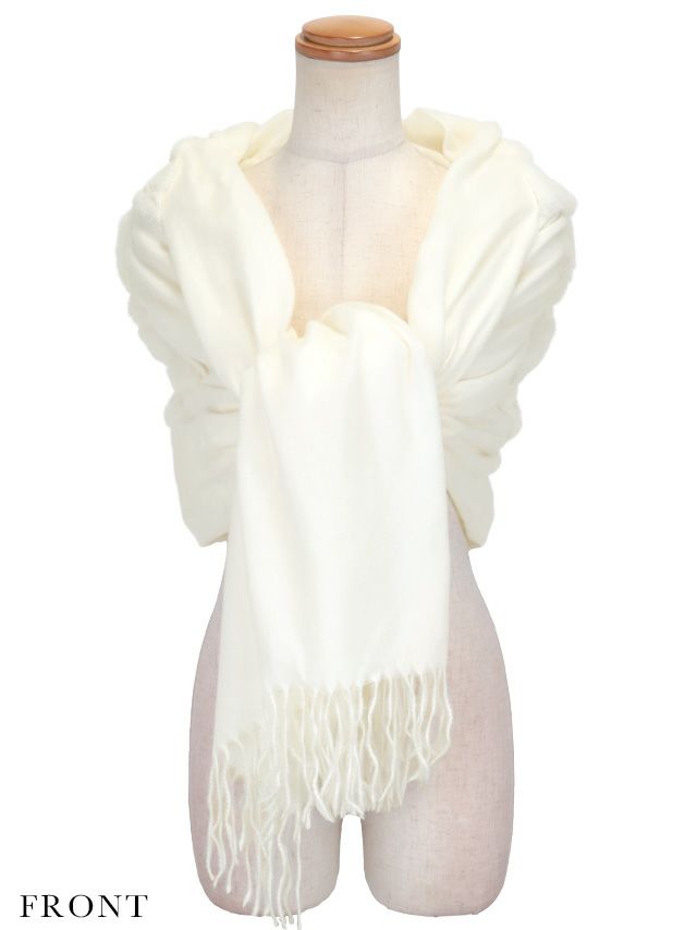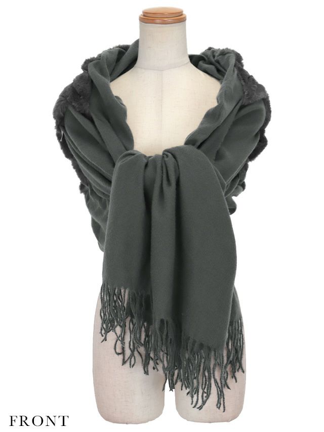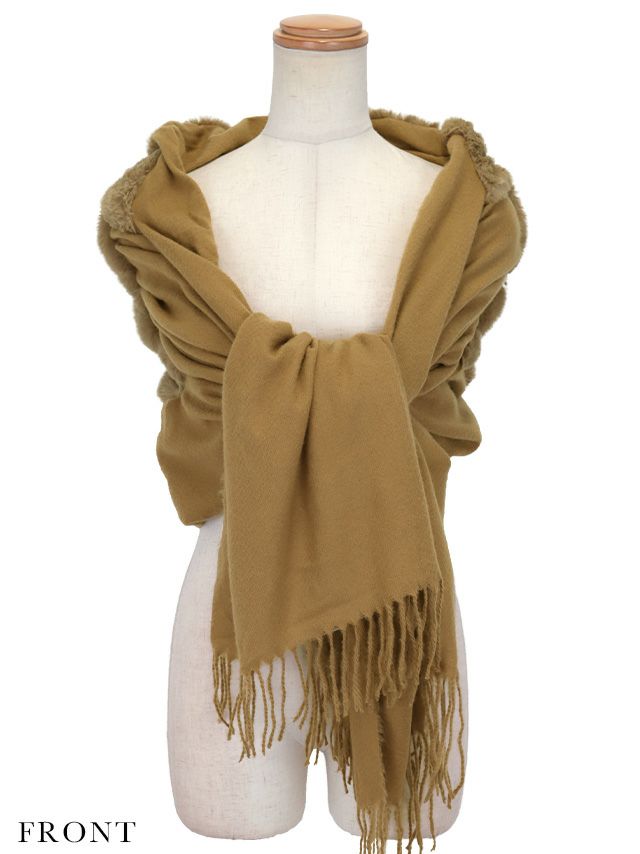 ワンカラーフリンジ付きファーニットショールの商品画像3枚目