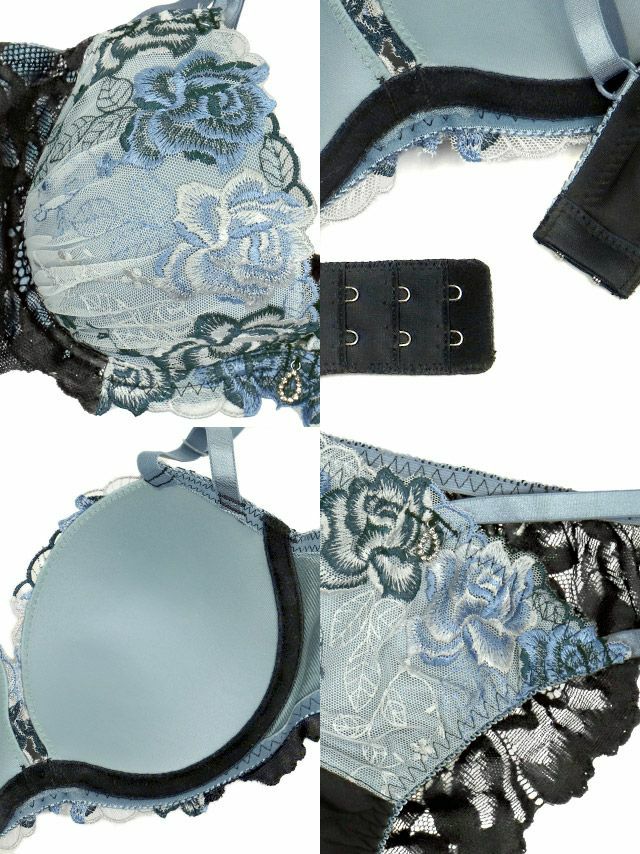 エレガントローズシアーブラックレースワイヤーブラジャーショーツ2点セット商品詳細3