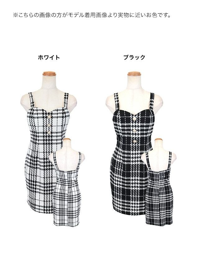 4. [SALE][再入荷]チェック柄キャミソールパールボタンタイトミニドレス(Sサイズ~XXLサイズ)(ちぴたん れいたぴ/キャバドレス着用)[myMinette/マイミネット]