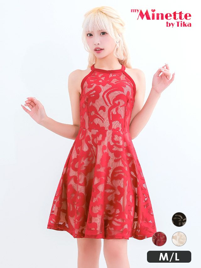 [SALE]ノースリーブワンカラーノースリーブフリルタイトミニドレス (Sサイズ~XXXXLサイズ) (林姫奈妙/キャバドレス着用)[myMinette/マイミネット]