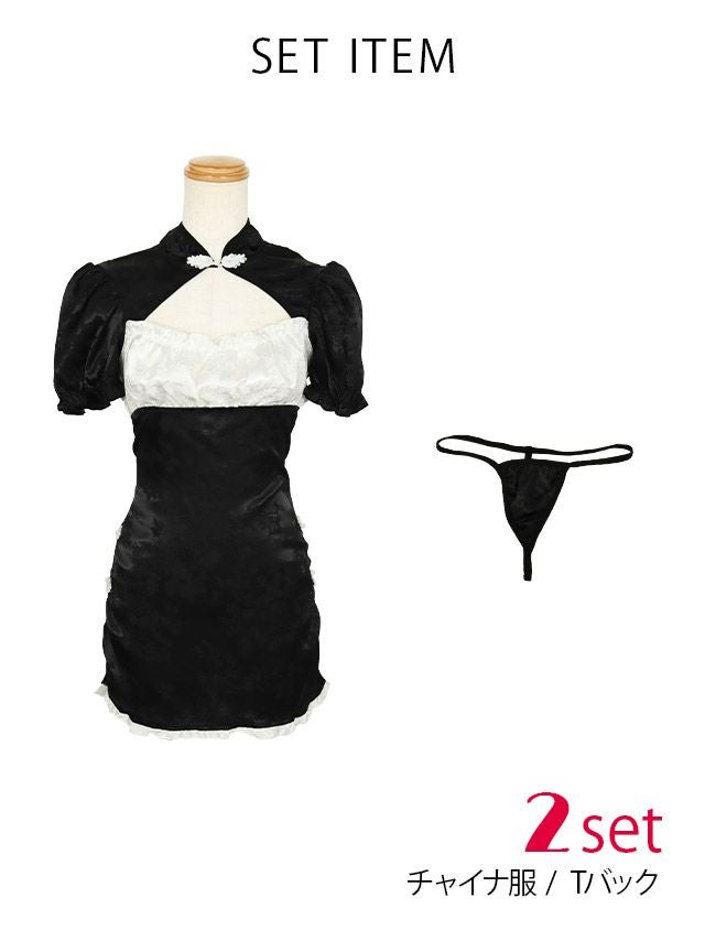 [セール]コスプレ バックオープンセクシーモノトーンプチプラタイトミニチャイナドレス [2点セット] (チャイナ服/Tバック)