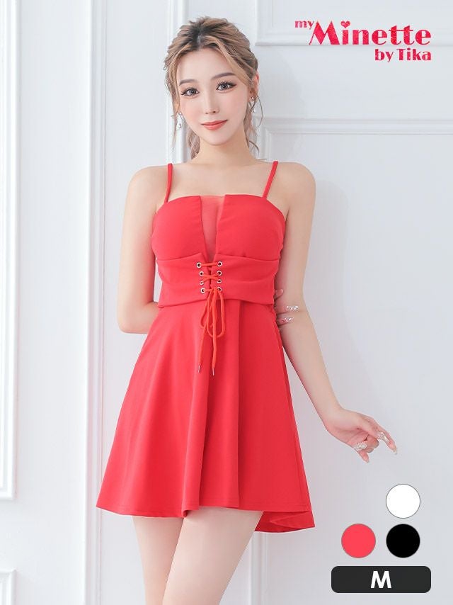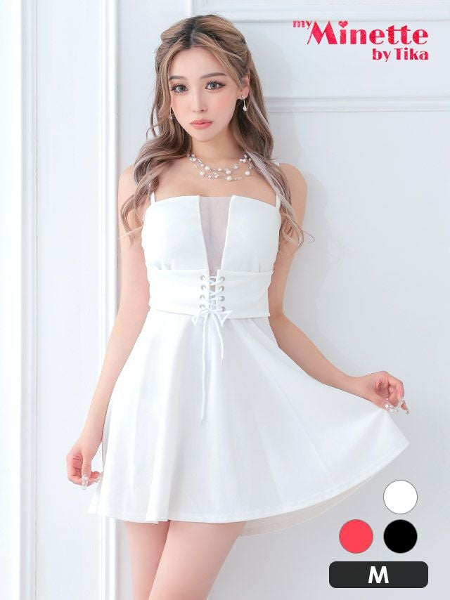 胸元シースルーウエストドローストリングプチプラフレアミニドレス (Mサイズ) (せいせい/キャバドレス着用)[myMinette/マイミネット]