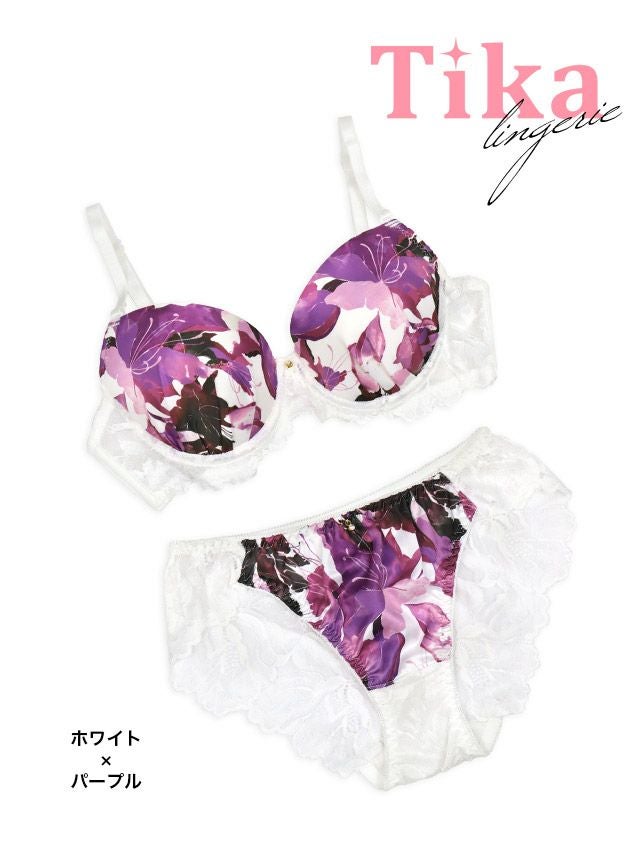 勝負下着 セクシー ランジェリー ビジュー付き大柄フラワーブラ&レースショーツ2点セット
