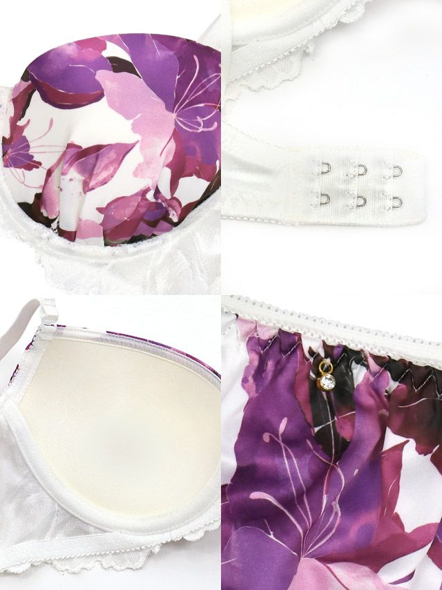 3. 勝負下着 セクシー ランジェリー ビジュー付き大柄フラワーブラ&レースショーツ2点セット