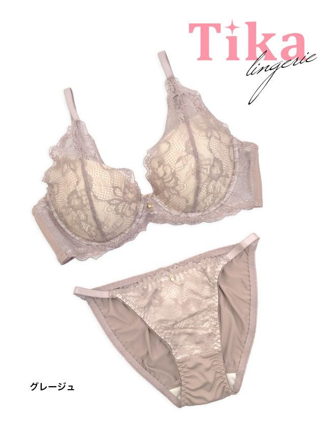 シアーフラワーレース三角脇高ブラ&ラインショーツ2点セット
