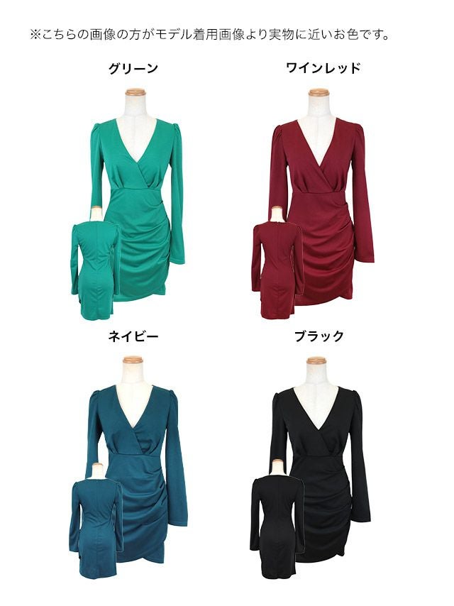 Vネック長袖ワンカラータイトミニドレスのカラー