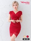 ミニドレス プチプラ 新人 タイト セクシー ラウンジ 半袖 シアー 低身長 谷間 カシュクール風 ベージュ キャバドレス (せいせい着用/M~XLサイズ対応) | myMinette/マイミネット