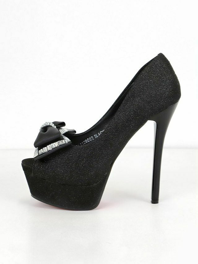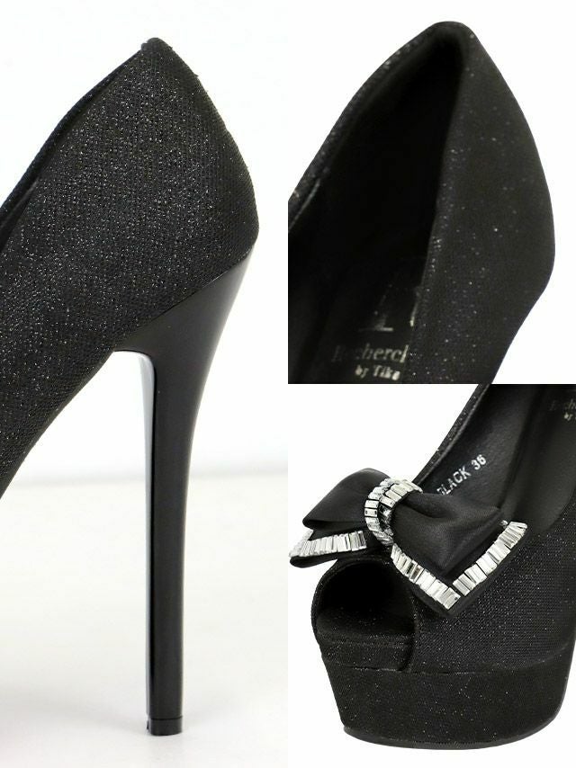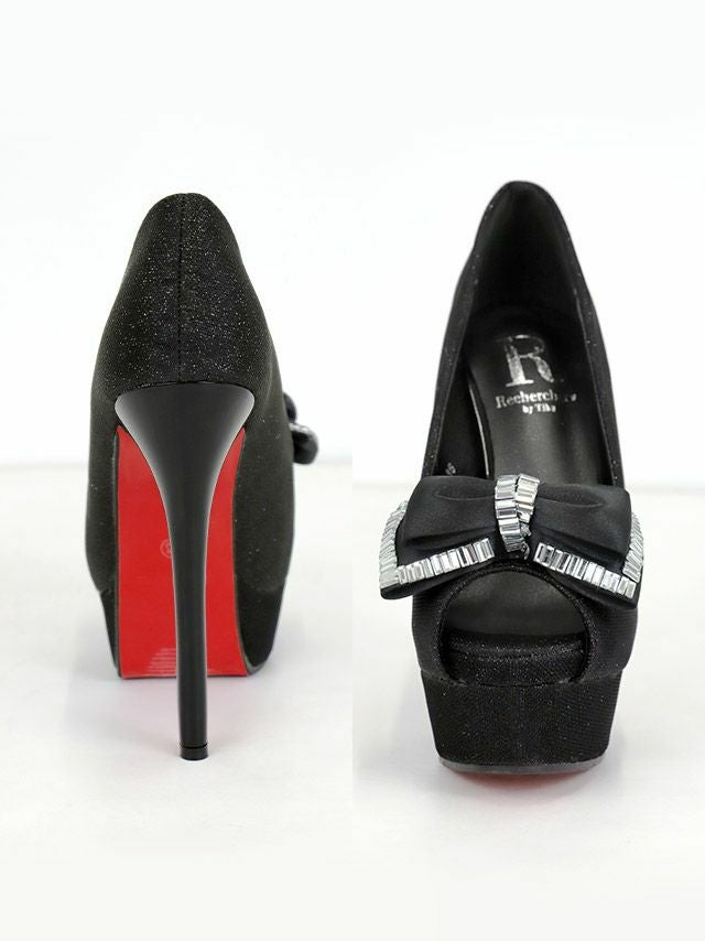 女の子らしいリボンを飾ったオープントゥパンプス☆