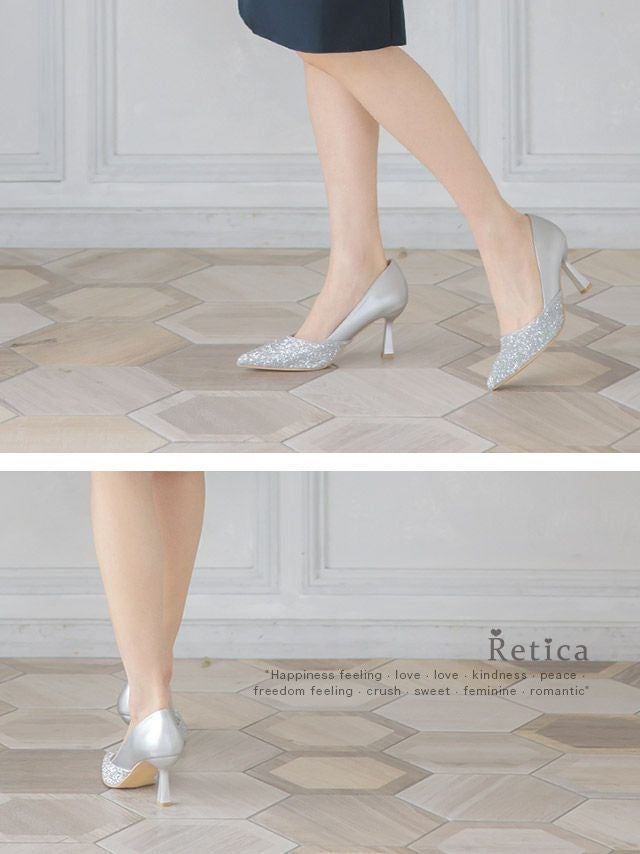 3. キラキラハイヒールラメパンプス(ブラック/シルバー/ベージュ) (7cmヒール)