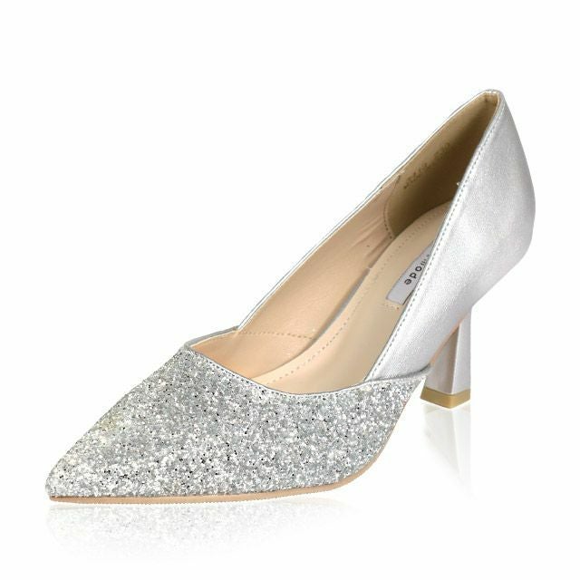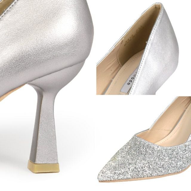 キラキラハイヒールラメパンプス(ブラック/シルバー/ベージュ) (7cmヒール)