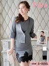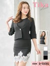 Vネックカラーペプラムリボンジャケットブロッサム刺繍ワンピースモノトーンスーツ (Sサイズ~XXXLサイズ) (久保七瀬/キャバスーツ着用)