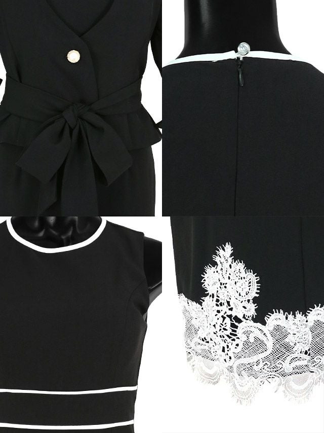 ウエストリボンペプラムジャケットフラワーレースパイピングワンピースセットアップスーツ ウエストリボンペプラムジャケットフラワーレースパイピングワンピースセットアップスーツ