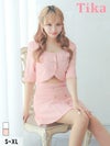 5. 袖ありショートトップスツイードセットアッププリーツダブルボタンフレアミニドレス (Sサイズ~XLサイズ) (聖菜/キャバドレス着用) [Tika/ティカ]