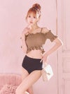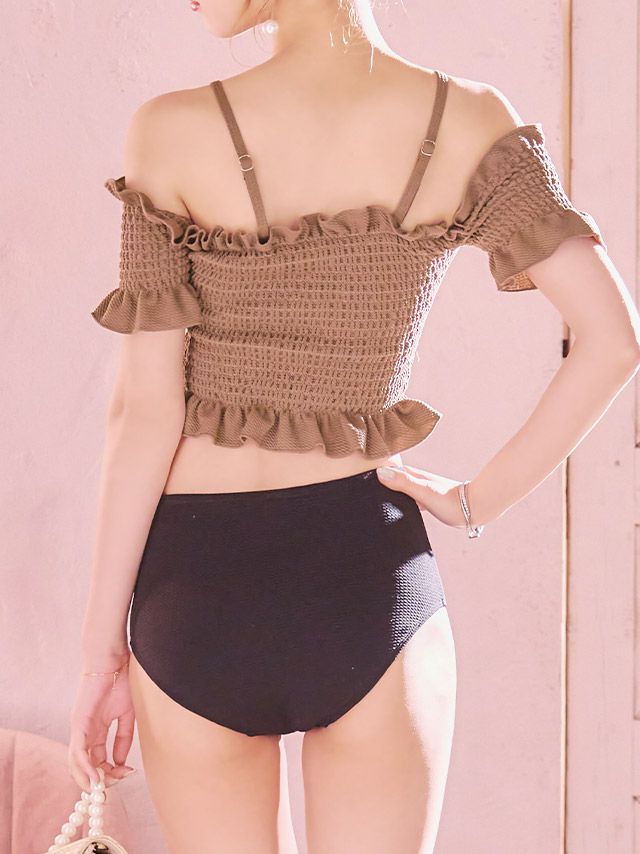 5. 水着 オフショルビスチェ体型カバーガーリーハイウエストビキニ