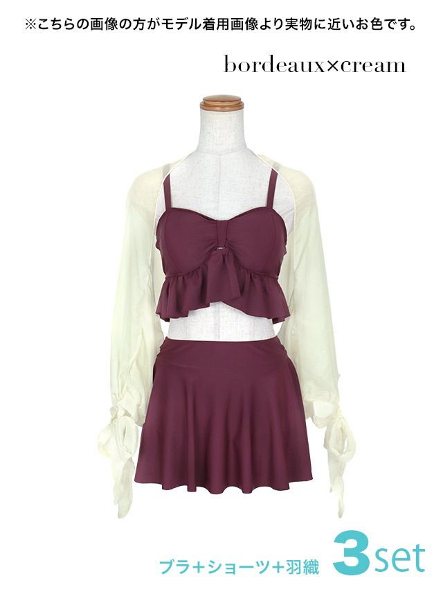 4. 水着 3点setフレアスカートフリルデザインシフォンボレロ付きビスチェビキニ