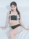 5. 水着 クロスストラップ サテンリボンパイピング ビスチェ ギャル ビキニ (ホワイト/聖菜着用)(ブラック/雨宮由乙花着用)