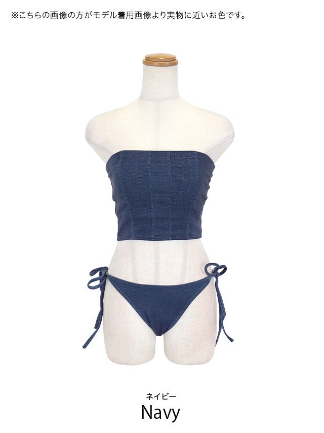 5. 水着 ストレッチ デニム ベアトップ チューブトップ ギャル ビキニ (ネイビー/MIYABI着用)