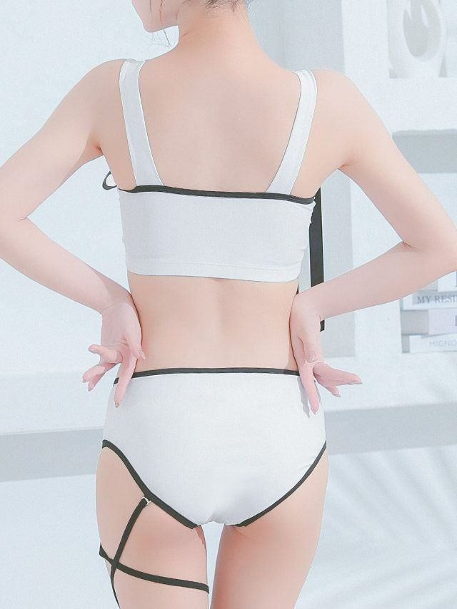 5. 水着 クロスストラップ サテンリボンパイピング ビスチェ ギャル ビキニ (ホワイト/聖菜着用)(ブラック/雨宮由乙花着用)