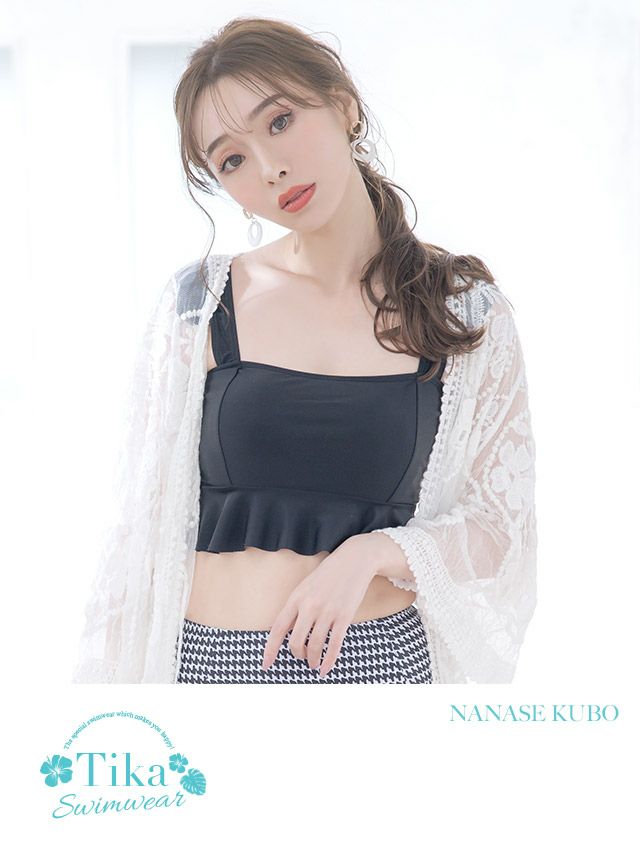 女の子らしいフリルデザインを施したビスチェは、