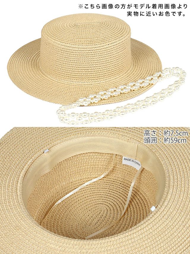 水着小物 パール付き麦わら帽子