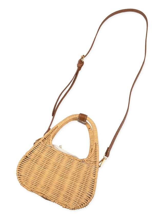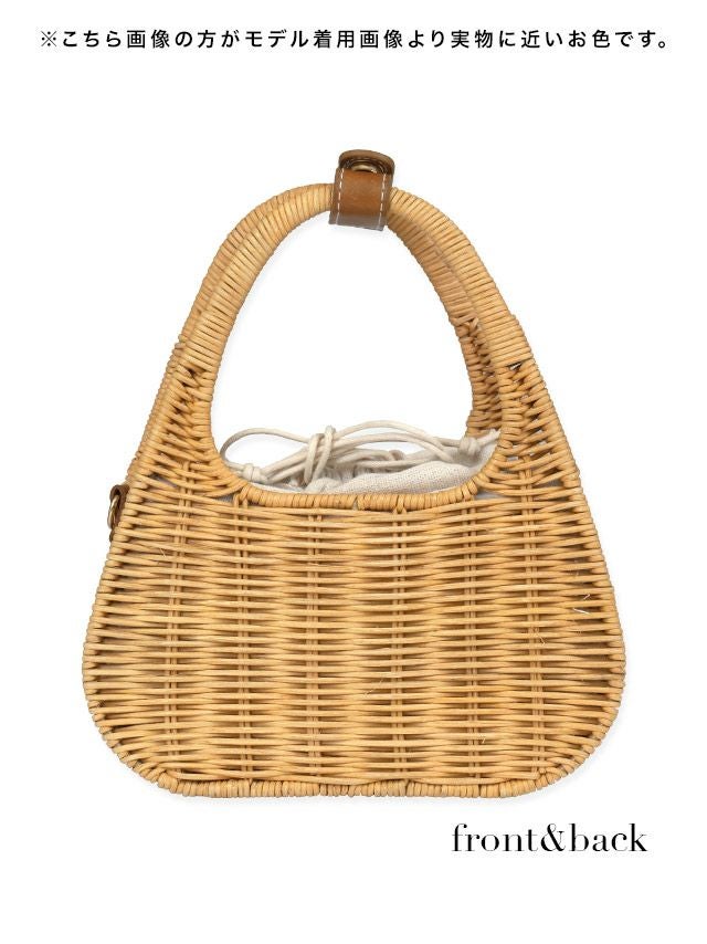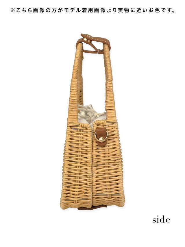 水着小物 ショルダーホワイト巾着付きミニかごバッグ