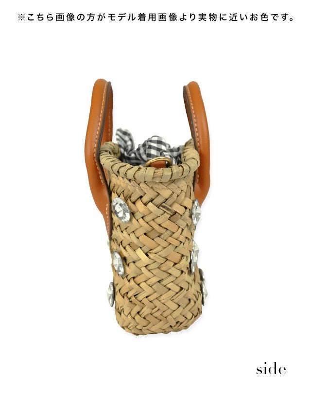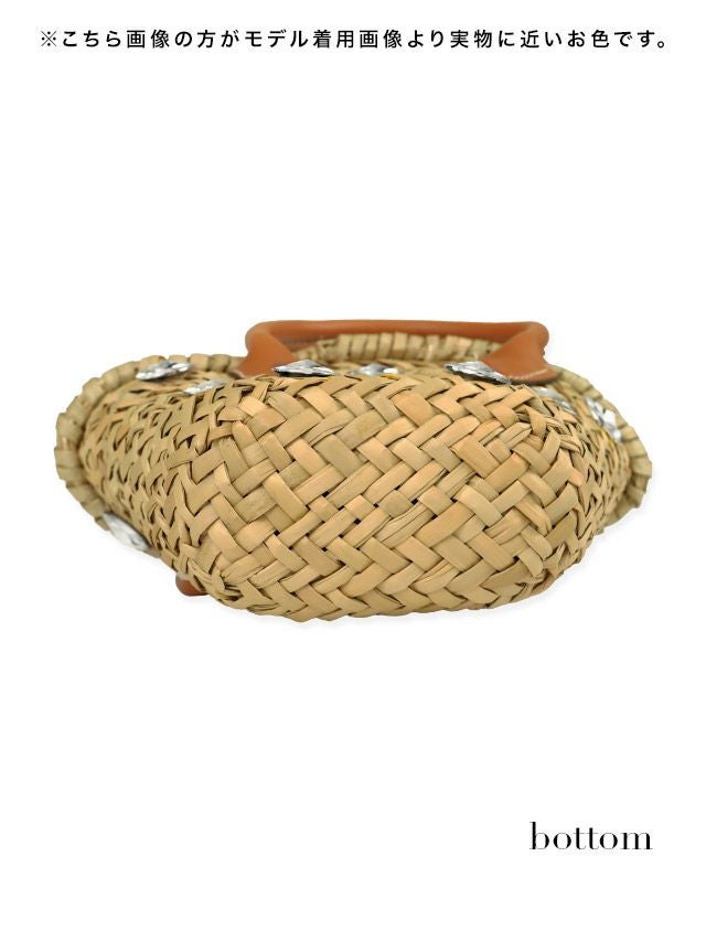 水着小物 オレンジショルダー付きビジューミニカゴバッグ