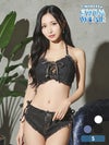 水着 デニム ホルターネック クロス リボン ハイレグ バンドゥ ビキニの詳細アップ