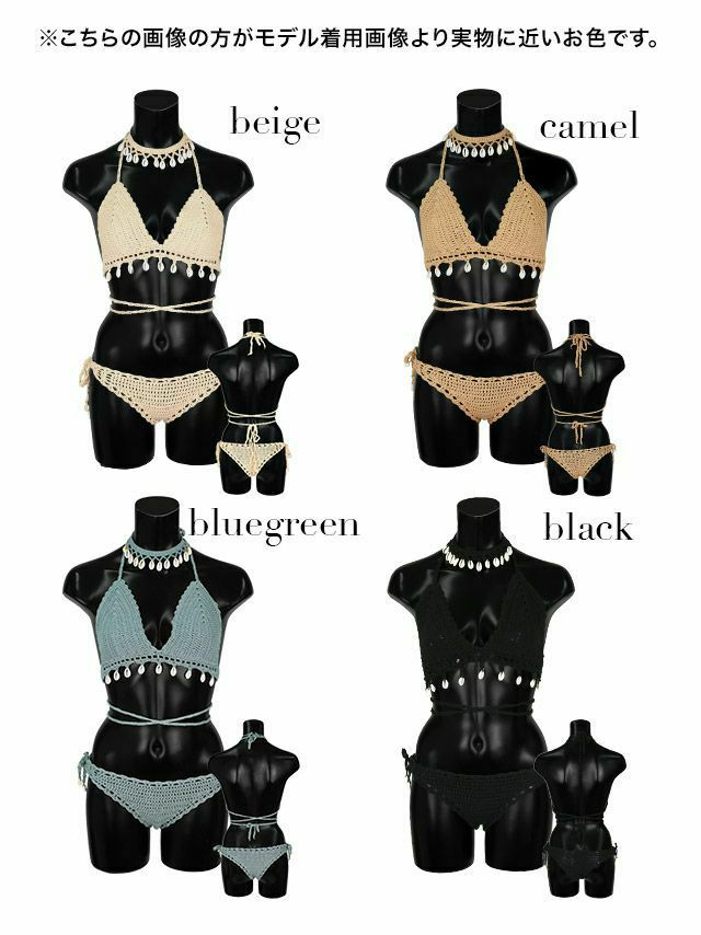 水着 ビキニ セクシー かぎ編み セット ニット バンドゥ myMinette マイミネット セクシー シェル チャーム クロシェ 三角ビキニ