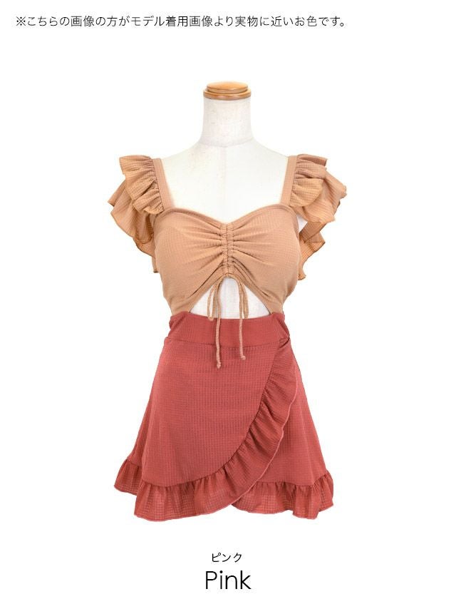 5. 水着 ワンピースウエストカットアウトフレアスカートガーリー体型カバーフリルビキニ