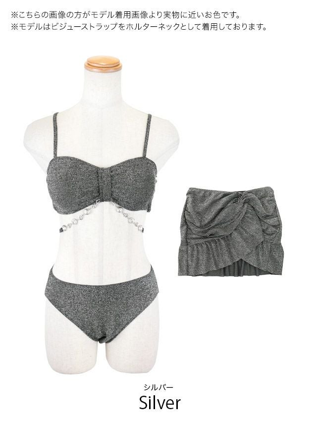 水着 マイクロバンドゥフリルミニスカート風グリッターラメホルターネックギャルビキニ