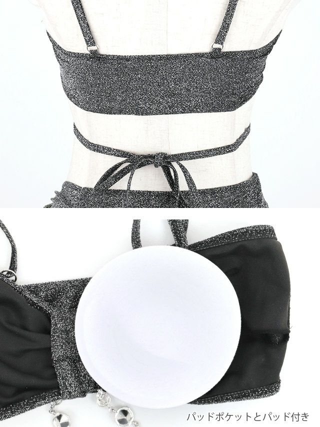 水着 レディース ビキニ バンドゥ フリル スカート ダンス フェス ホルターネック myMinette マイミネット 水着 マイクロ バンドゥ フリル ミニスカート風 グリッター ラメ ホルターネック ギャルビキニ