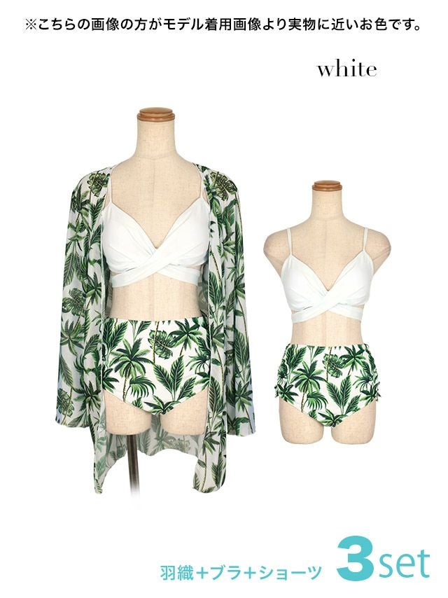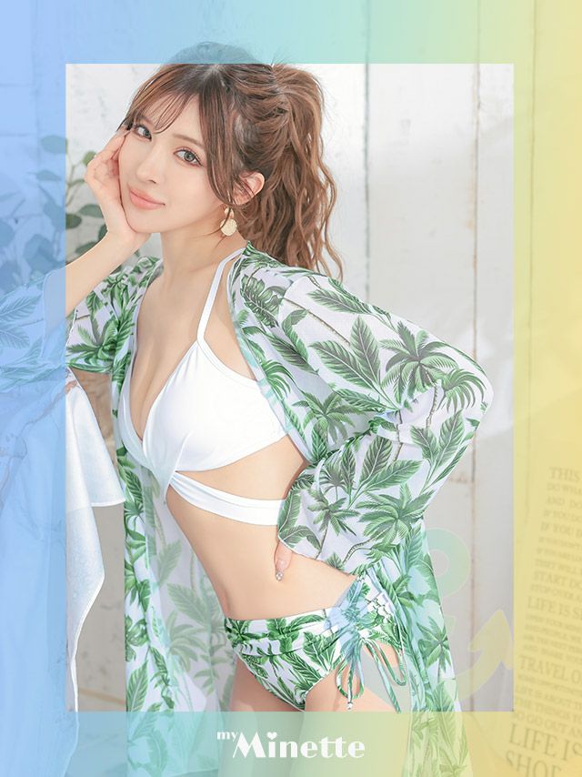 水着 レディース セット 羽織り 体型カバーmyMinette マイミネット ボタニカル柄ガウン付きリボンビキニ