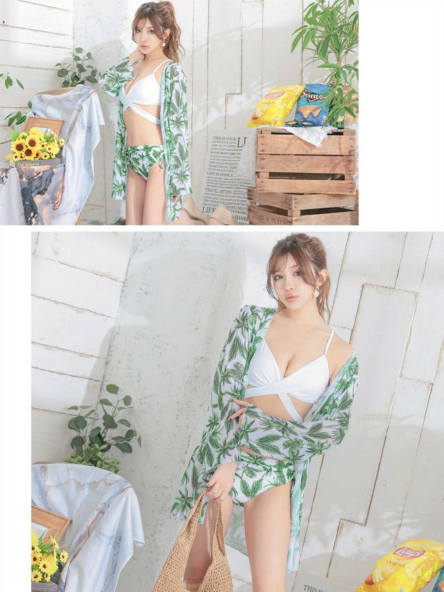 4. 水着 ボタニカル柄ガウン付きリボンビキニ