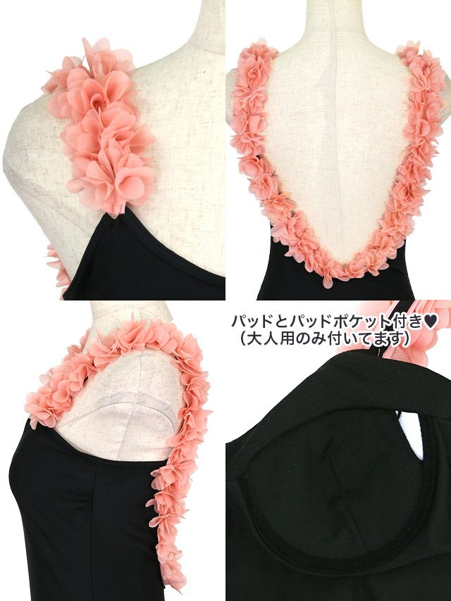 水着オープンバック3Dフリルデザインガーリーペアモノキニビキニの詳細アップ