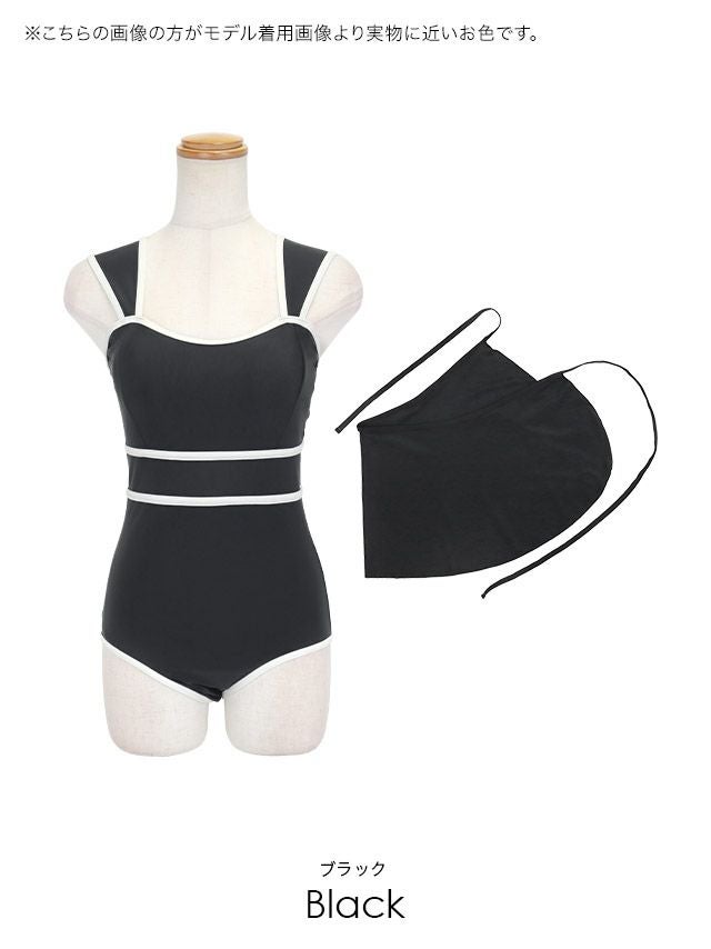 4. 水着 パレオスカート付き パイピング ガーリー 2way モノキニ ビキニ (ブラック/早河ルカ着用)