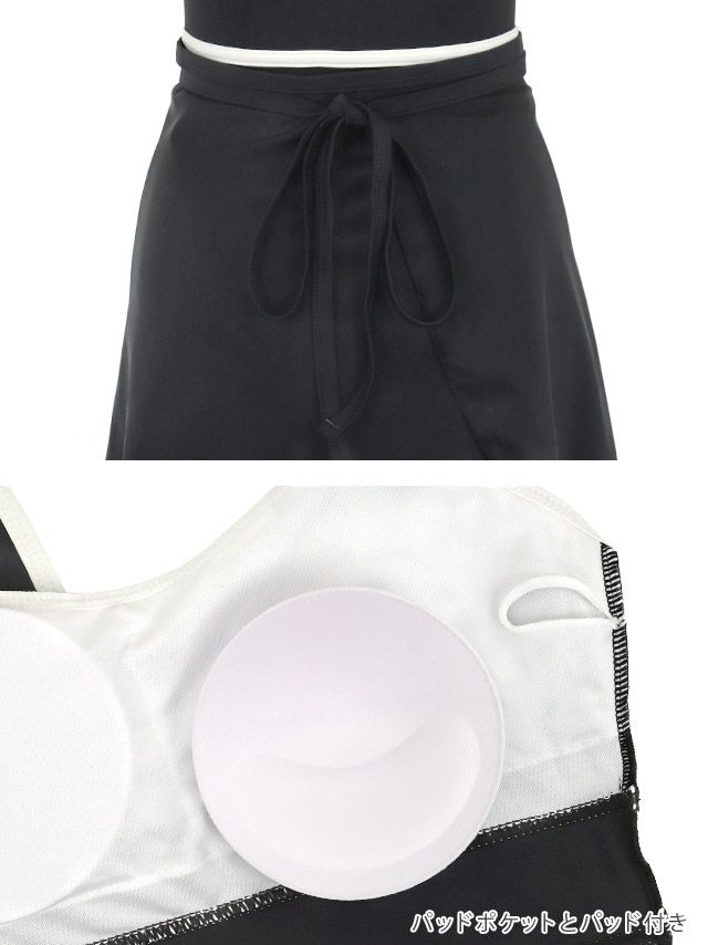 2Wayの着こなしを楽しめる♪ 水着 パレオスカート付き パイピング ガーリー 2way モノキニ ビキニ (ブラック/早河ルカ着用)