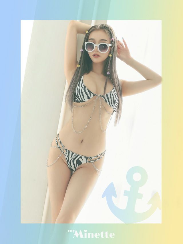 水着 レディース セット イベント フェス myMinette マイミネット ゼブラ柄ホルターネック2ラインセクシー三角ビキニ