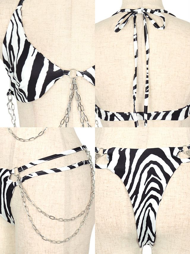4. 水着 ゼブラ柄2ラインセクシー三角ホルターネックビキニ