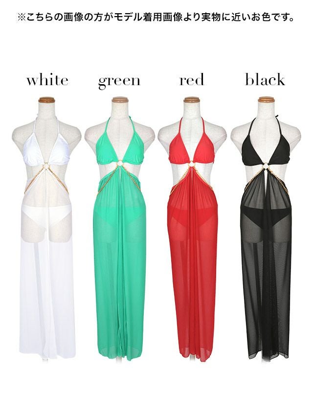 水着 ゴールドチェーンパレオ付き2点setビキニ