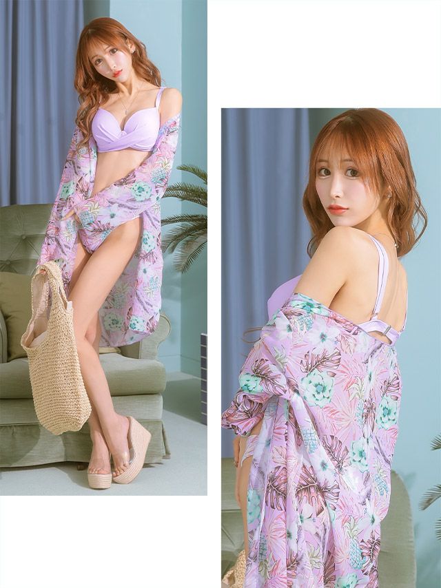 4. 水着 ボタニカル柄ガウンハートカットクロスビキニ