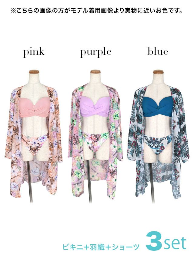 水着 レディース セット 体型カバー 羽織り myMInette マイミネット ボタニカル柄ガウンハートカットクロスビキニ