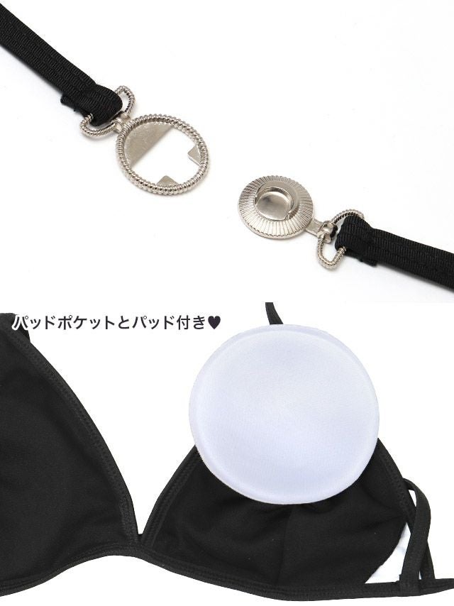 水着 ムーンチャーム付きバッククロスモノトーンエスニック三角ビキニ