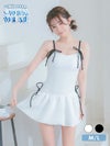水着 バイカラーリボン 韓国風 体型カバー ガーリー ワンピースビキニ width=