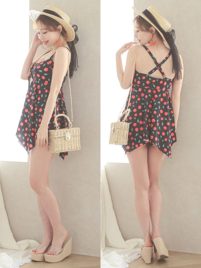 水着 チェリー模様のチュニックビキニ