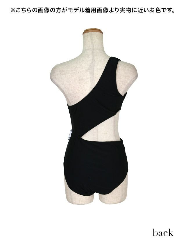 ワンショルダーとウエストのカットアウトデザインが今っぽく、