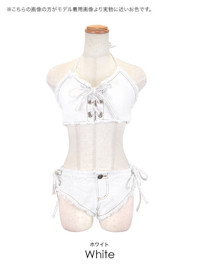 3. [新作] [セール] 水着 プチプラ 2点セット ギャル ホルターネック バストクロス デニム 青 ブルベ ビキニ (みのり着用/Sサイズ対応) | myMinette/マイミネット