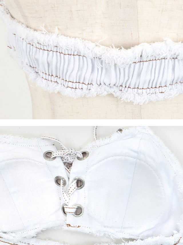 水着 プチプラ 2点セット ギャル ホルターネック バストクロス デニム 青 ブルベ ビキニ